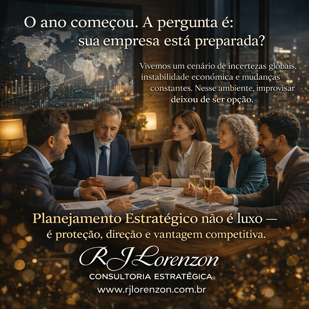 É com essa visão que a RJLorenzon Consultoria Estratégica inicia oficialmente seus trabalhos neste novo ciclo. Ao longo do ano, iremos abordar temas fundamentais para a sobrevivência e o fortalecimento das pequenas e médias empresas, conectando o cenário macroeconômico às decisões do dia a dia empresarial. Nosso compromisso é ajudar empresários a substituir improviso por direção, incerteza por clareza e reação por estratégia.